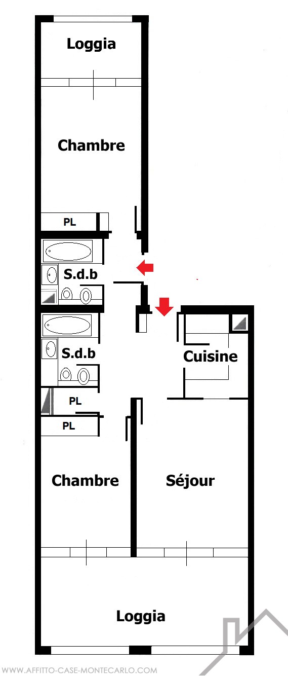 Fontvieille - Nice 2 BEDROOM through-apartment