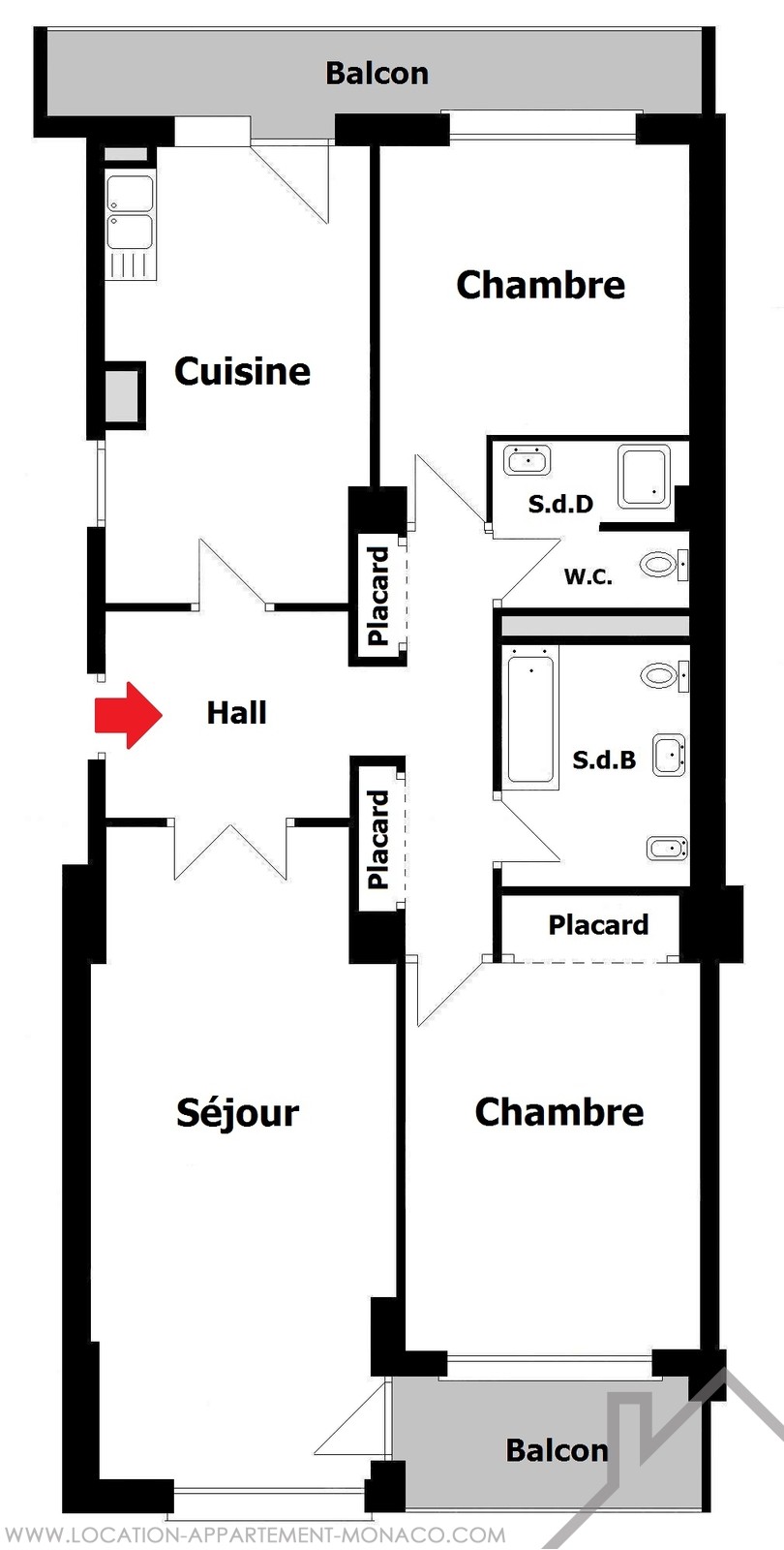 Entrance, living room, two bedrooms, fully equipped kitchen, bathroom, shower-room, cupboards, balconies