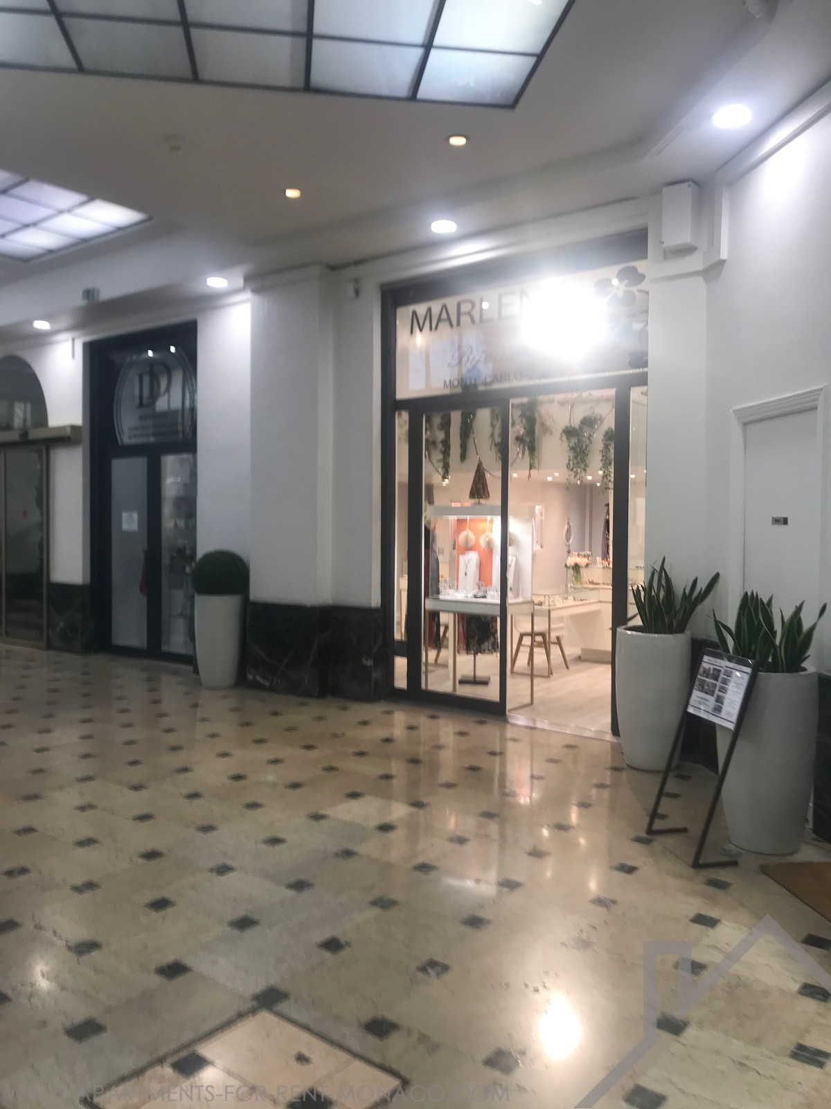 Located in the heart of the Golden Square, in the commercial Gallery of the Palace of la Scala, this pretty trade with showcase is available for rental in lease.