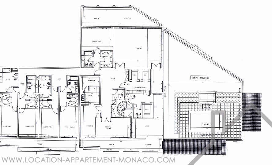 The 7-room  apartment with a living area of 366 m² and 336 m² of terraces benefits from a private swimming pool and a view of the Port of Cap d'Ail and the sea.