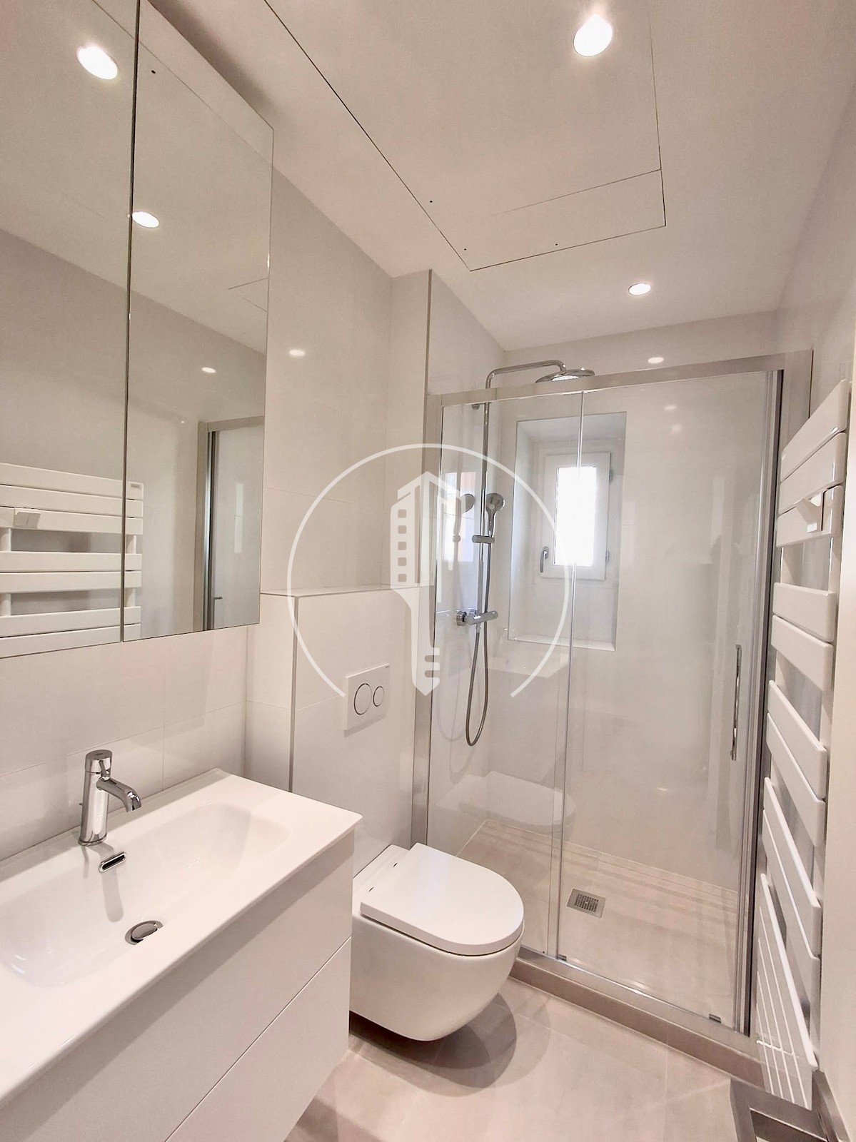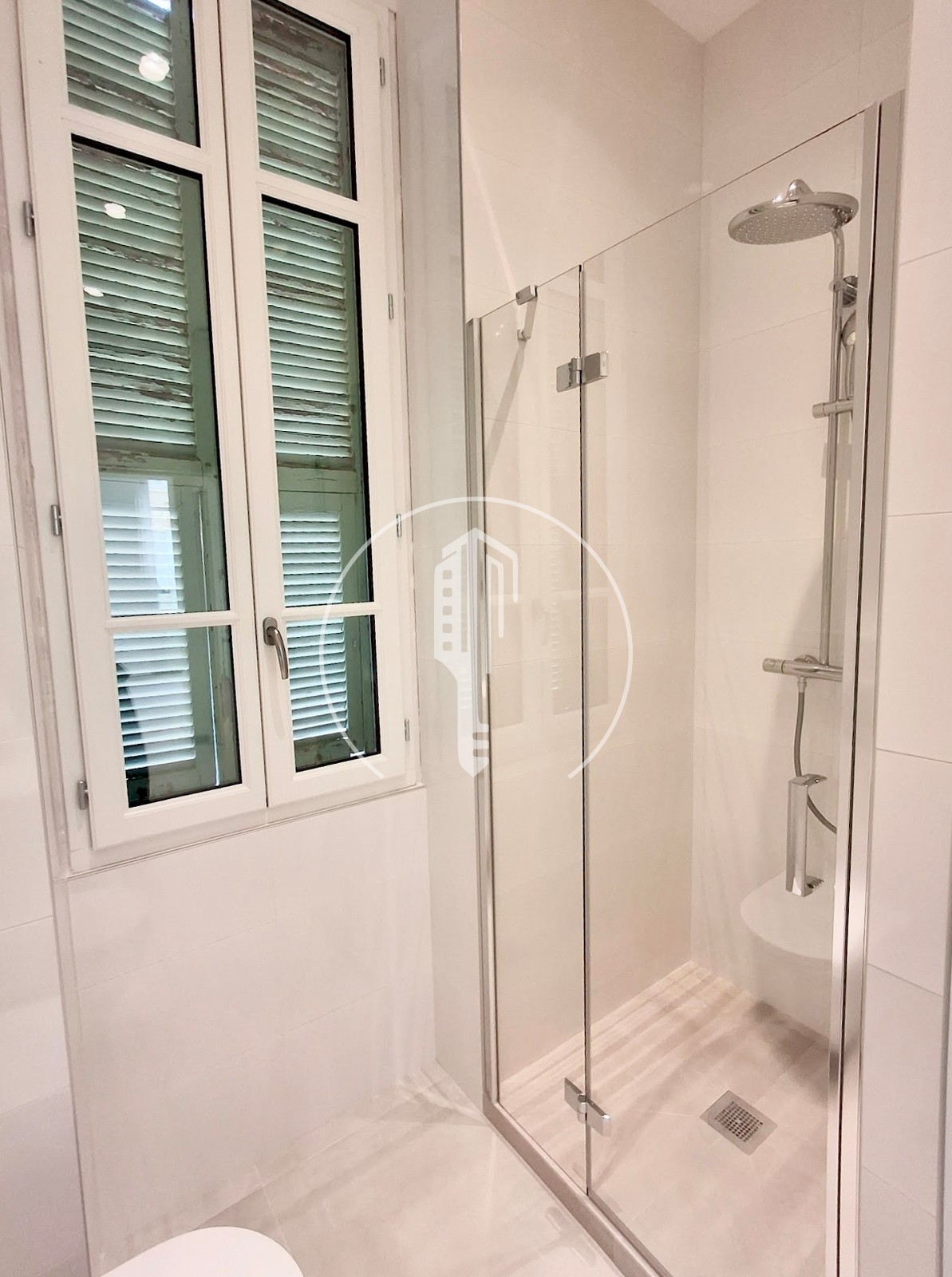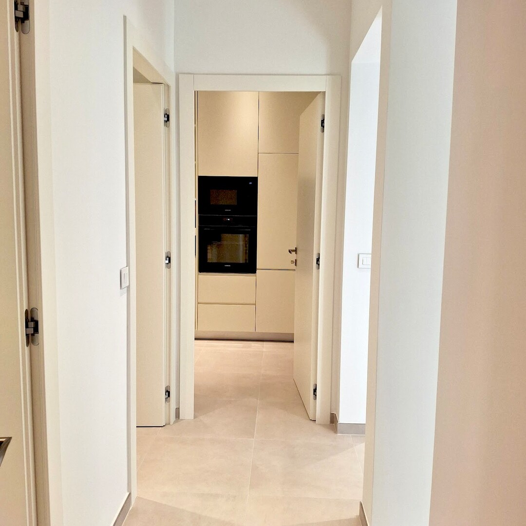 Entrance, living room, corridor, 3 bedrooms with cupboards, 2 shower rooms, equipped kitchen, air conditioning, double glazing