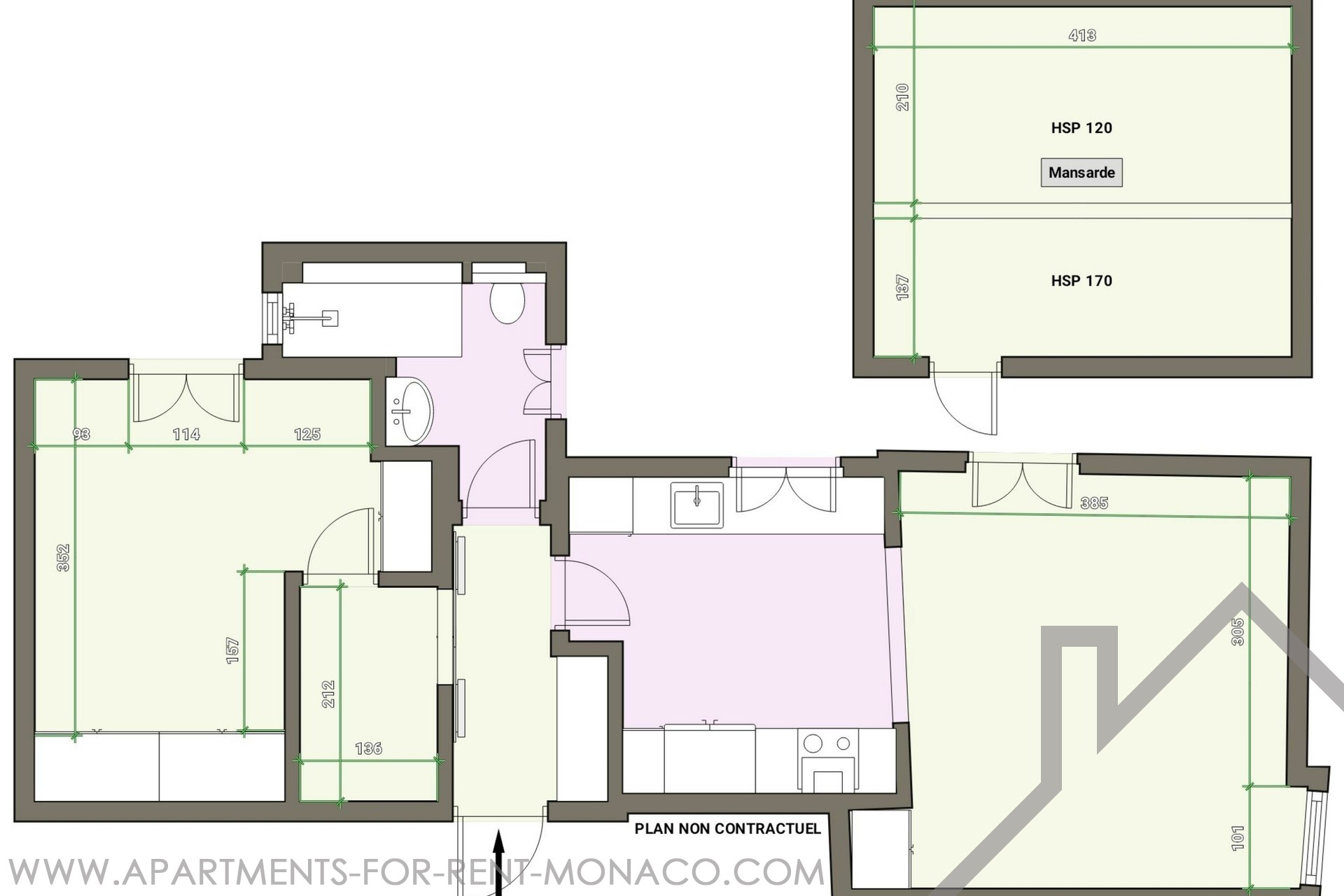 Composed by : entrance hall, open plan kitchen on the living room, bathroom, separated space of 3 sqm, 2 dressings, bedroom, 14 sqm of garret on the top with velux system.