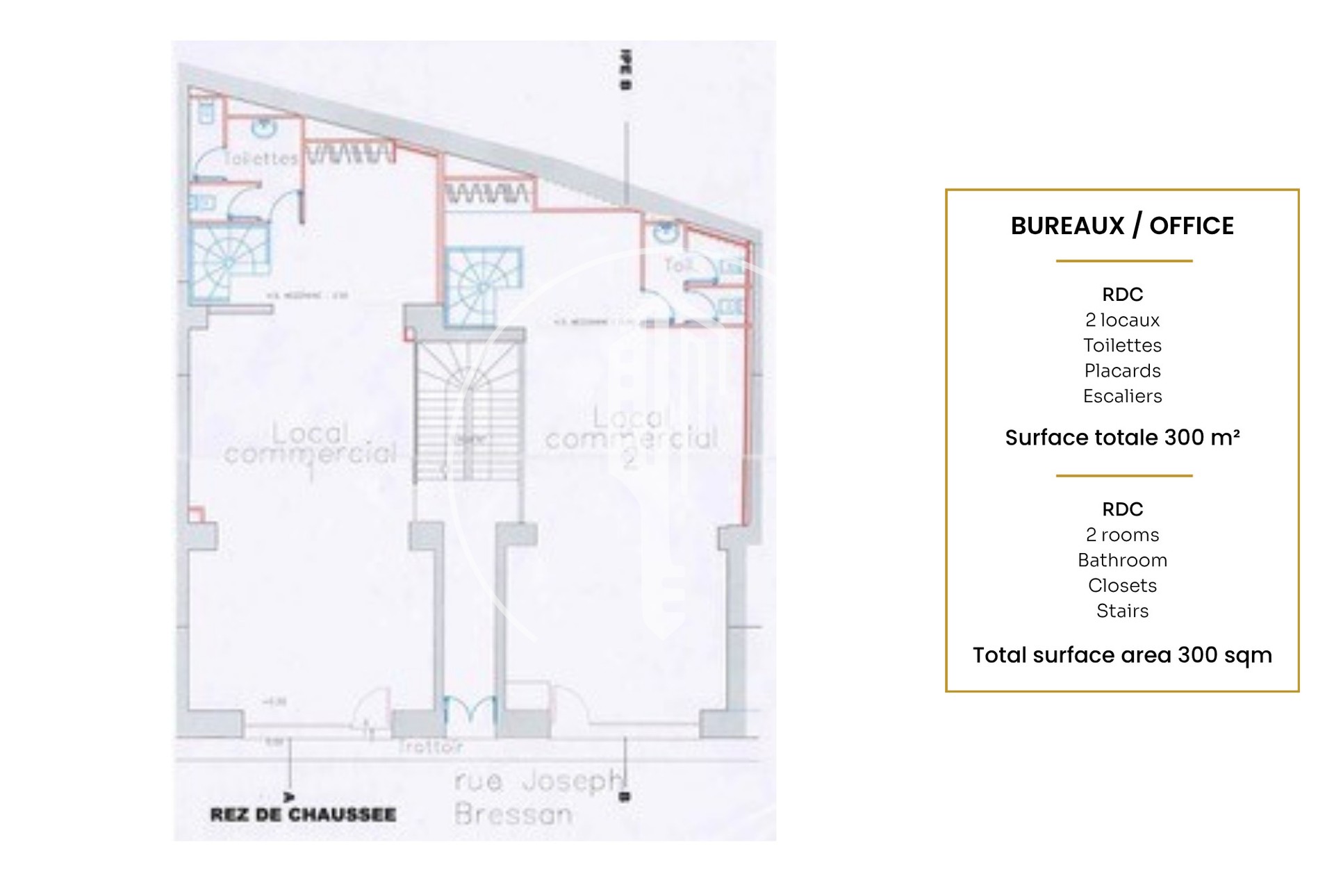 This mixed-use commercial space benefits from excellent visibility thanks to its two large windows on the street. Currently configured as a prestigious showroom, the space consists of two rooms connected to each other on the ground floor.