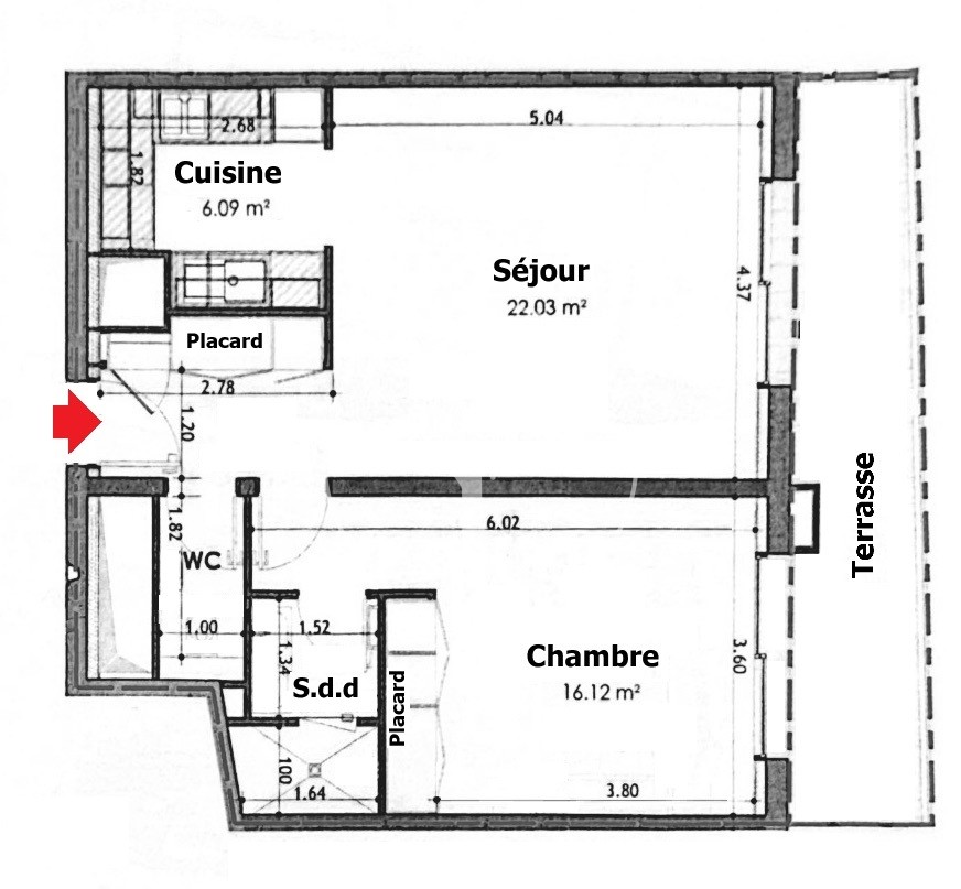 An entrance hall, a spacious living room, a fully equipped kitchen, a bedroom with cupboard, a shower room, a separate toilet, a terrace with access from the bedroom and living room.