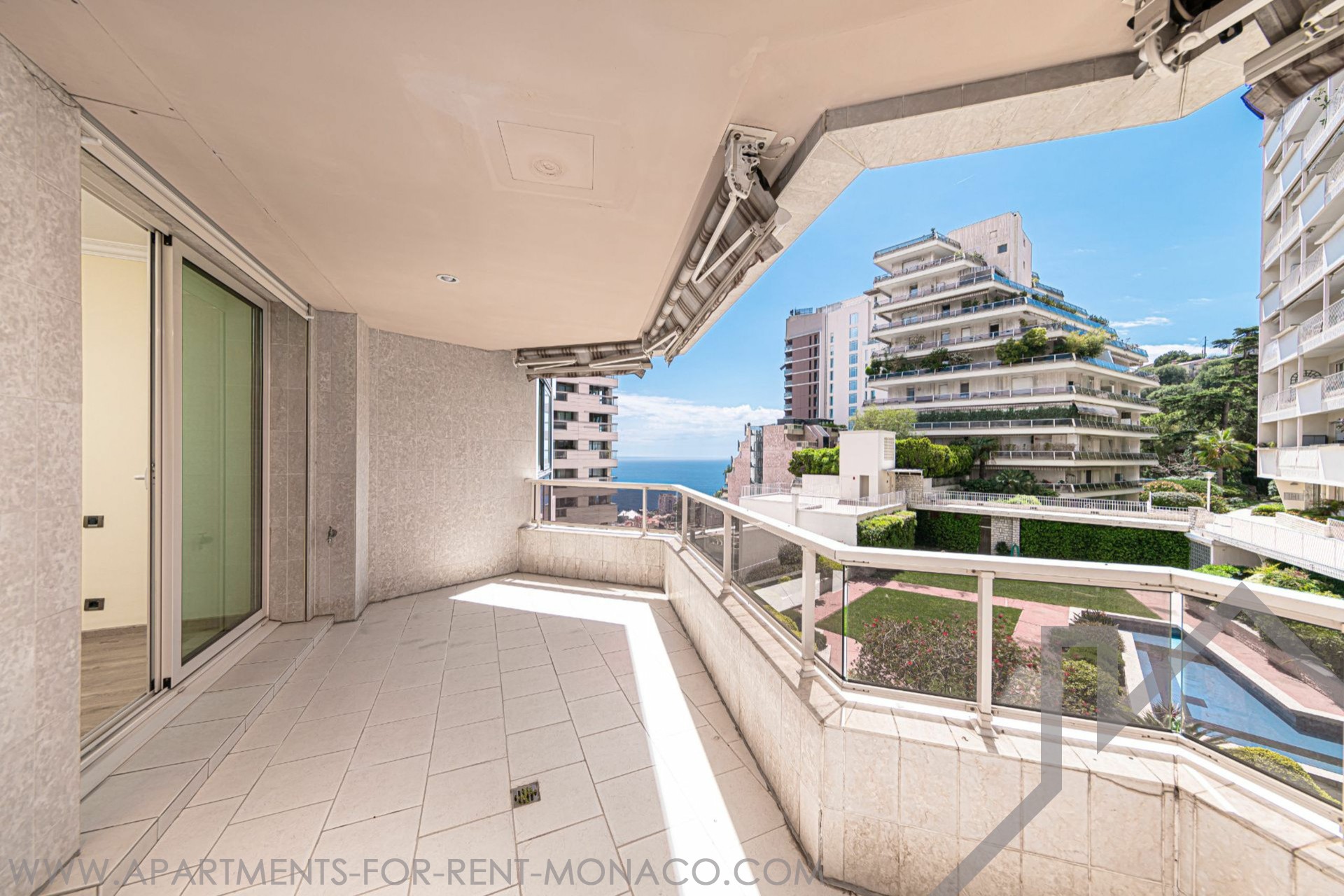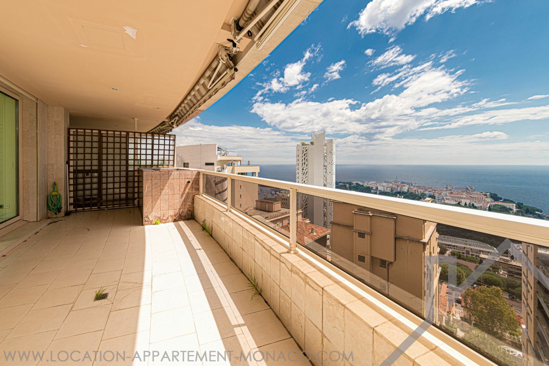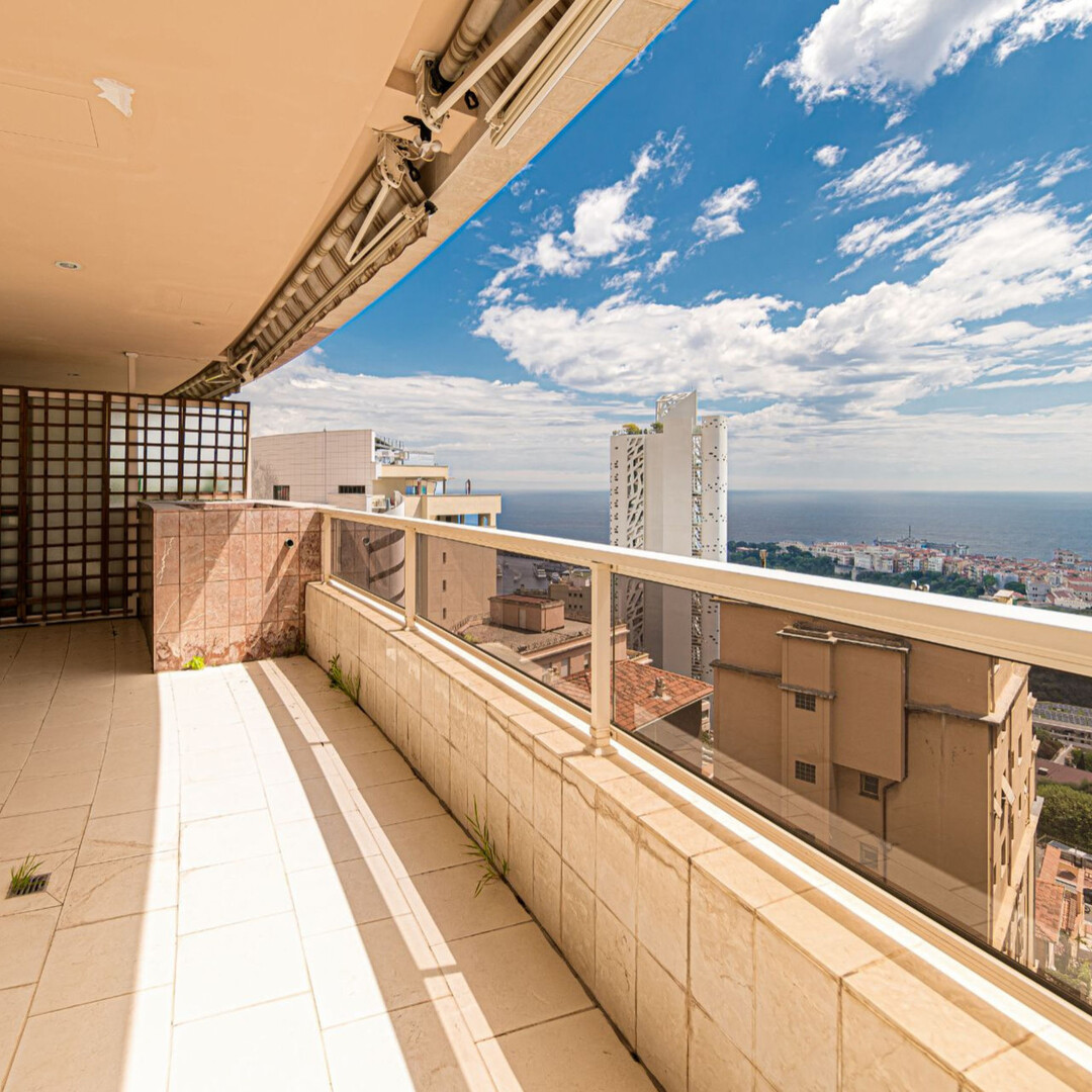 4/5 furnished rooms with a sea view in the Jardin Exotique district, approximately 209 m² total area including 156 m² of living space and 53 m² of terraces (2 plus 1 balcony). Description: Hall, entrance, large living/dining room opening onto the terrace, equipped independent kitchen, guest toilet, 3 bedrooms opening onto a terrace or balcony, 2 bathrooms, 1 shower room. 1 cellar and 1 parking space. Available in June 2026