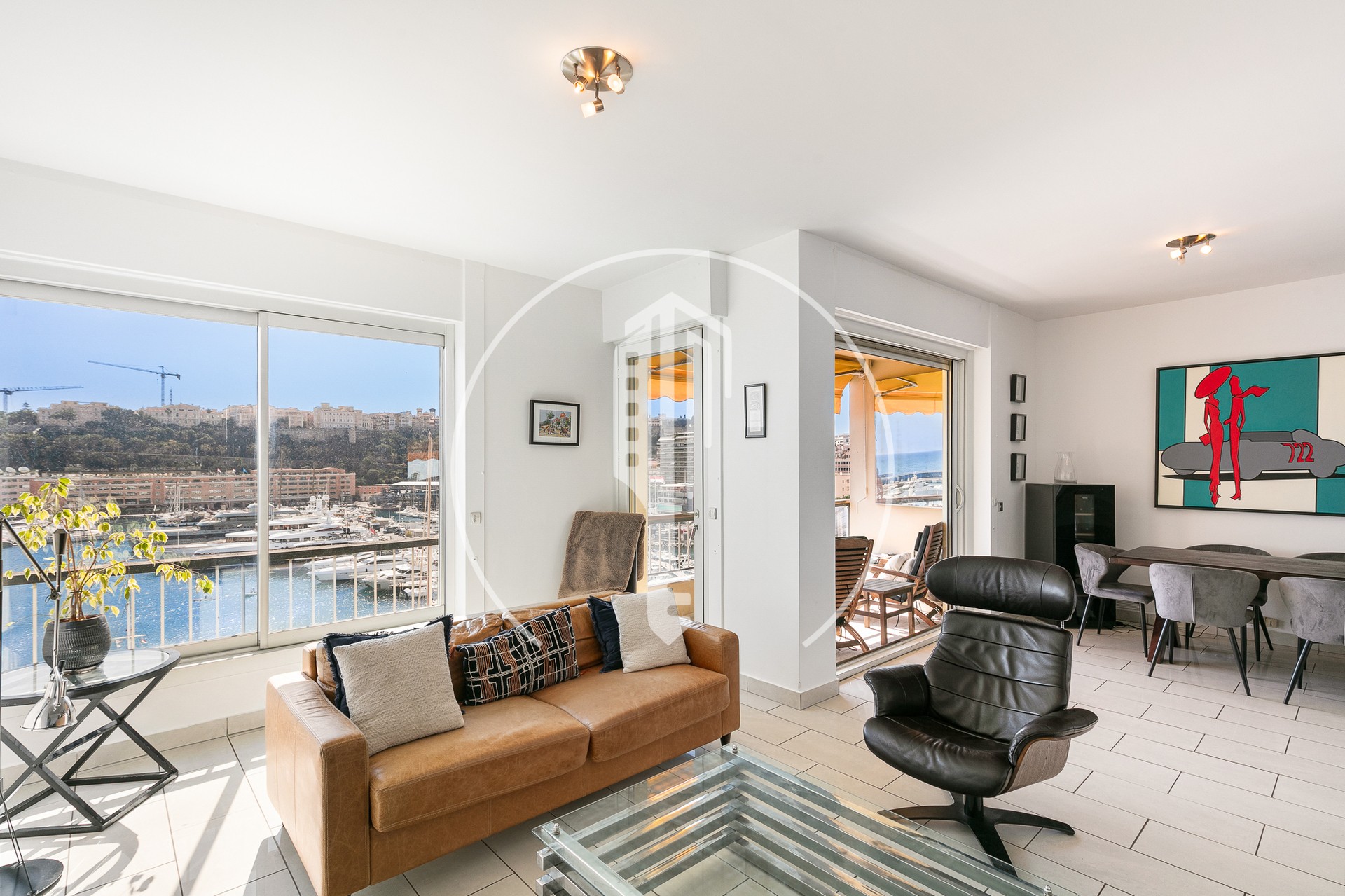 Two loggias harmoniously extend the living spaces and offer an exceptional panorama of the Mediterranean Sea, Port Hercule, and the Rock.