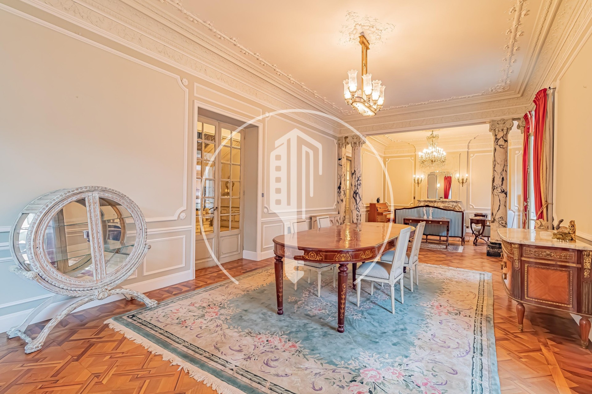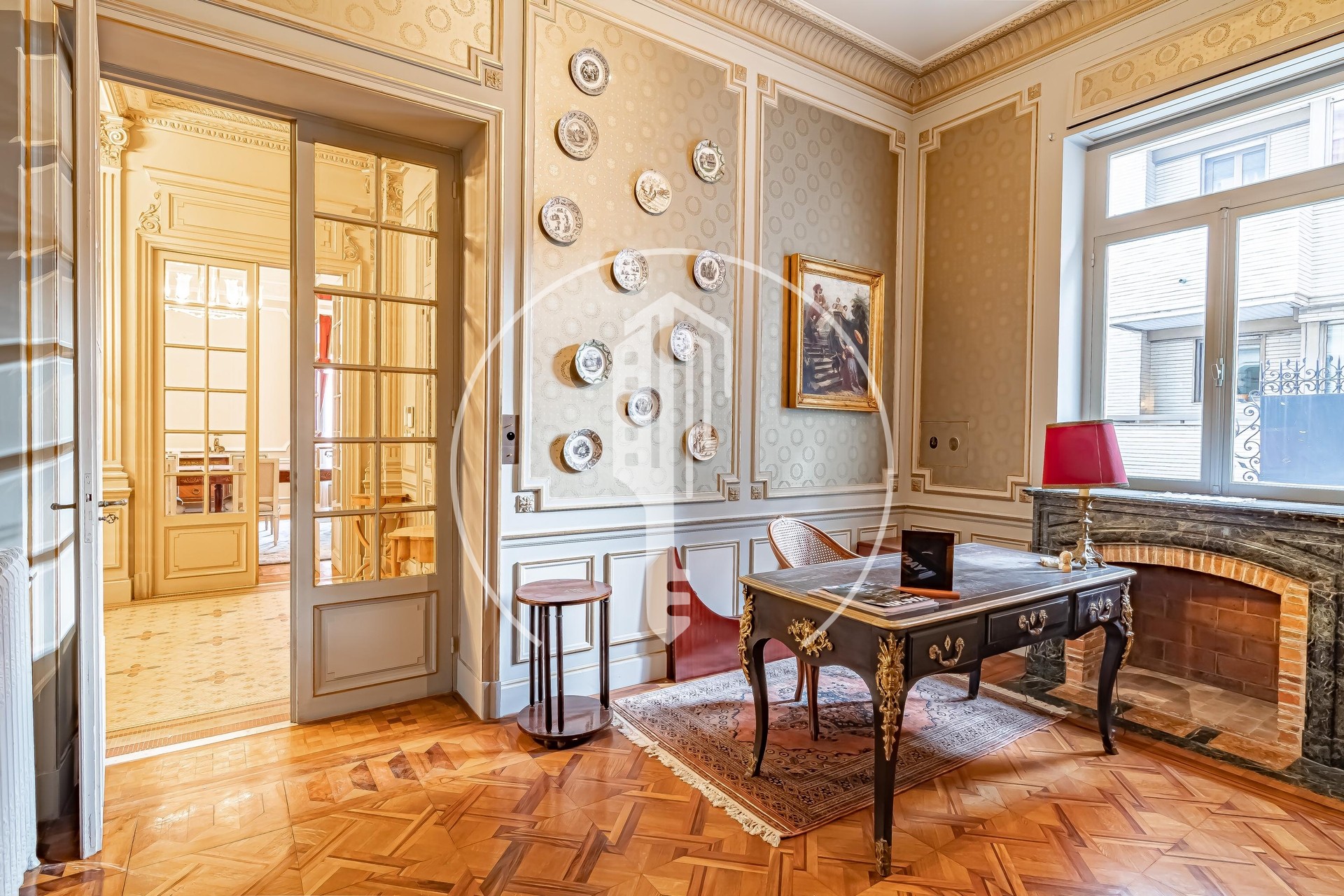 This exceptional character villa enchants with its timeless elegance and unique finishes. Spanning 4 levels, it offers expansive living areas thoughtfully designed to meet the most discerning standards. Bathed in natural light and tastefully appointed, this one-of-a-kind residence stands out for its charm and distinctive architectural style.On the ground floor, an impressive entrance hall opens onto a spacious double reception room, highlighted by white marble Ionic columns and a refined marble fireplace. A guest WC completes this level, along with a study/bar that features a fireplace.