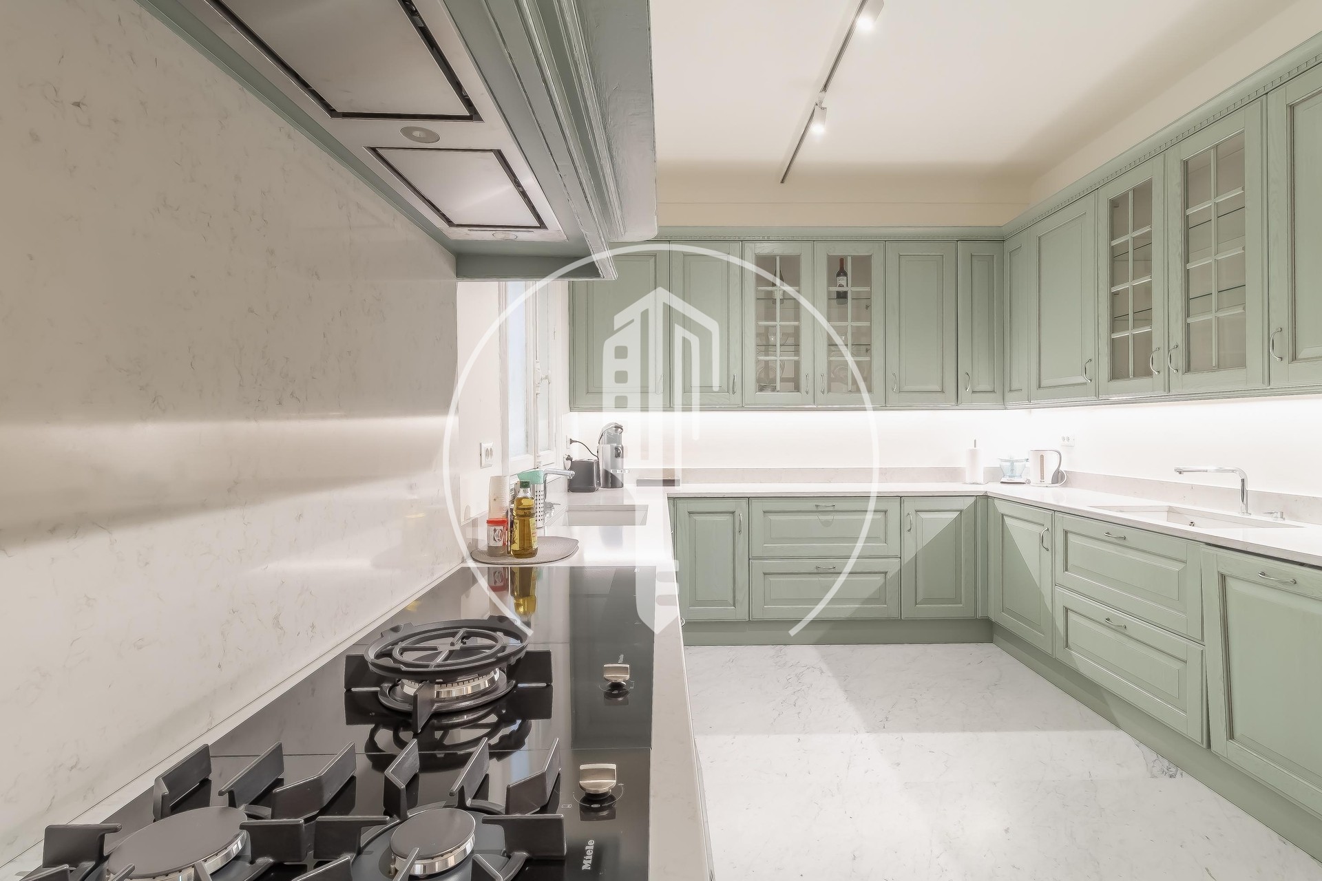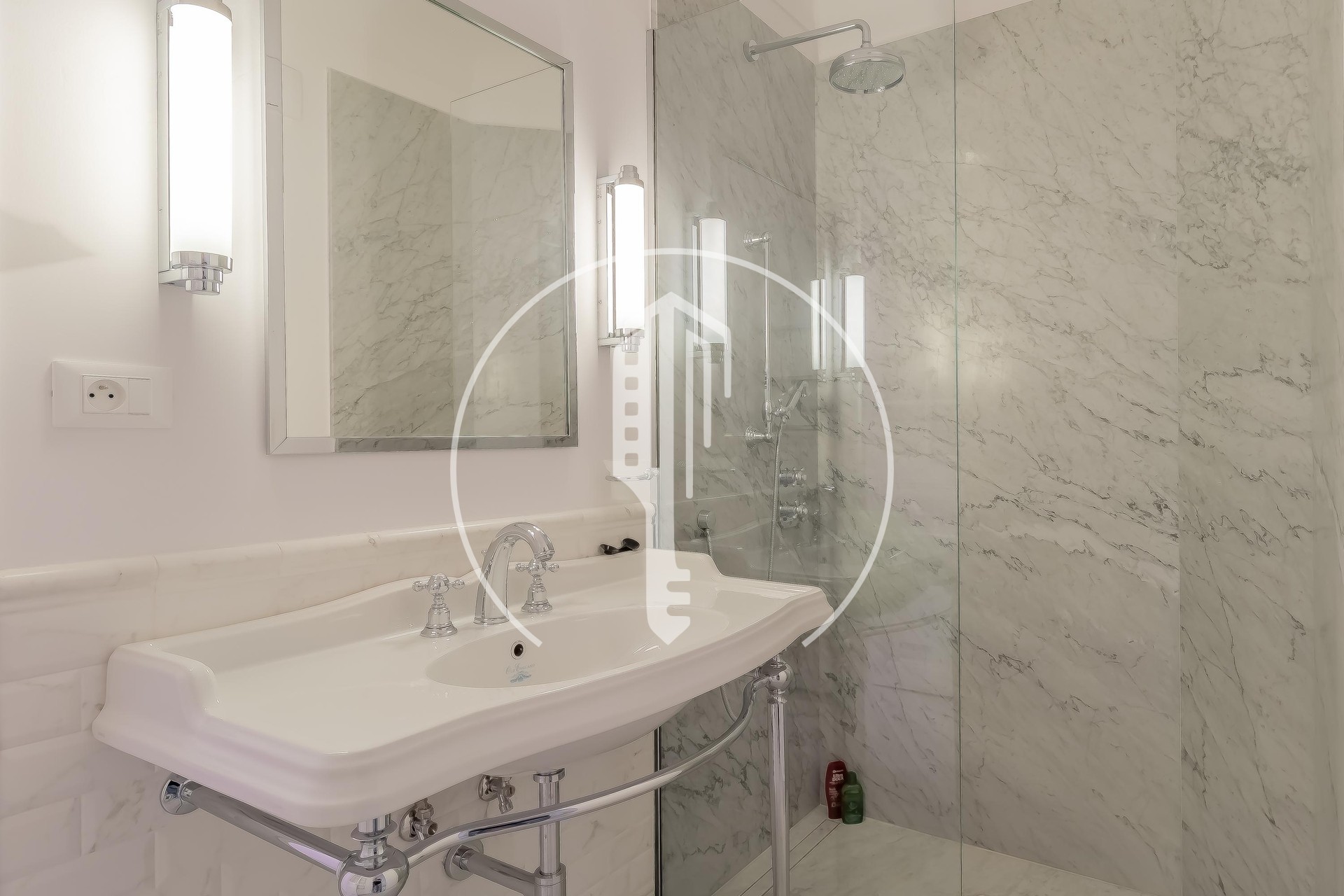 A first staircase leads down to the lower ground floor, where you’ll find a generous hall, a large fully equipped kitchen, 3 double bedrooms, 3 shower rooms, a laundry room, storage and a technical room.