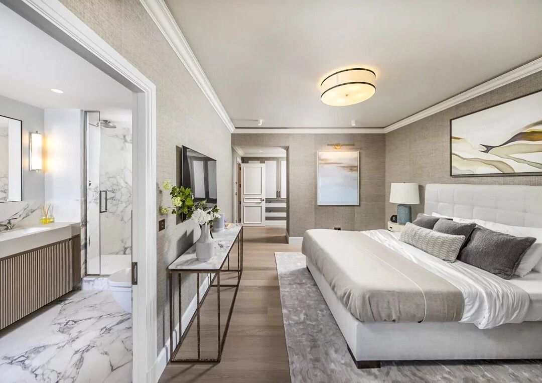 The apartment comprises: entrance hall, living area with open-plan, fully-equipped kitchen, sitting area and study. 2 bedrooms, 2 full bathrooms. The 179 m2 terrace offers plenty of space for relaxing and dining.
