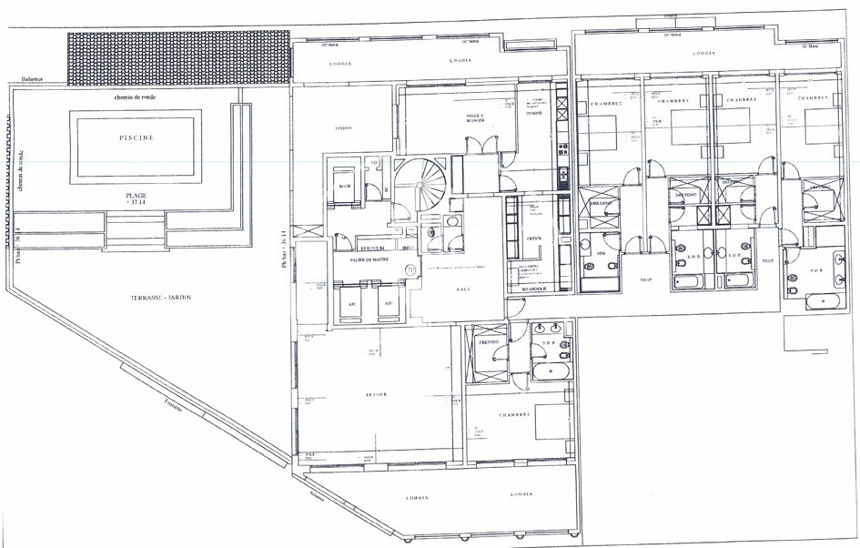 Located in a luxurious residence with 24-hour concierge service, fitness room, laundry room, exceptional apartment alone on landing, consisting of a large entrance hall, beautiful living room on terrace/garden, dining room on loggia, beautiful fully equipped kitchen, pantry/laundry room, 5 bedrooms with en-suite bathroom and full shower, 3 dressing rooms, numerous cupboards, guest toilet; wonderful terrace/garden with stunning sea views, beach with beautiful swimming pool;