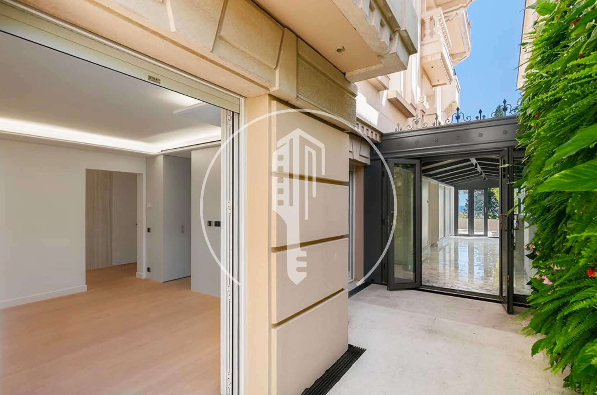 This exceptional property features a spacious, light-filled living room opening onto a terrace with breathtaking views of the Casino, as well as an elegant winter garden with a fireplace, also extended by an outdoor space. The fully equipped kitchen offers high-end finishes. The bedrooms, located on the courtyard side, ensure absolute tranquility and each include an en-suite bathroom and built-in storage.