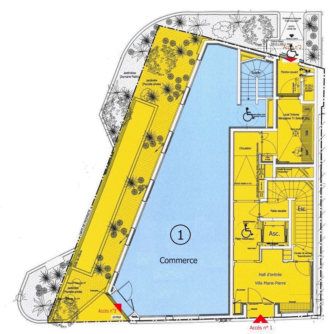 Rez-de-chaussée - 95,00 m2 environ : Entrée privative, pièce principale, accès au niveau inférieur par escalier privatif, ascenseur, climatisation, double vitrage